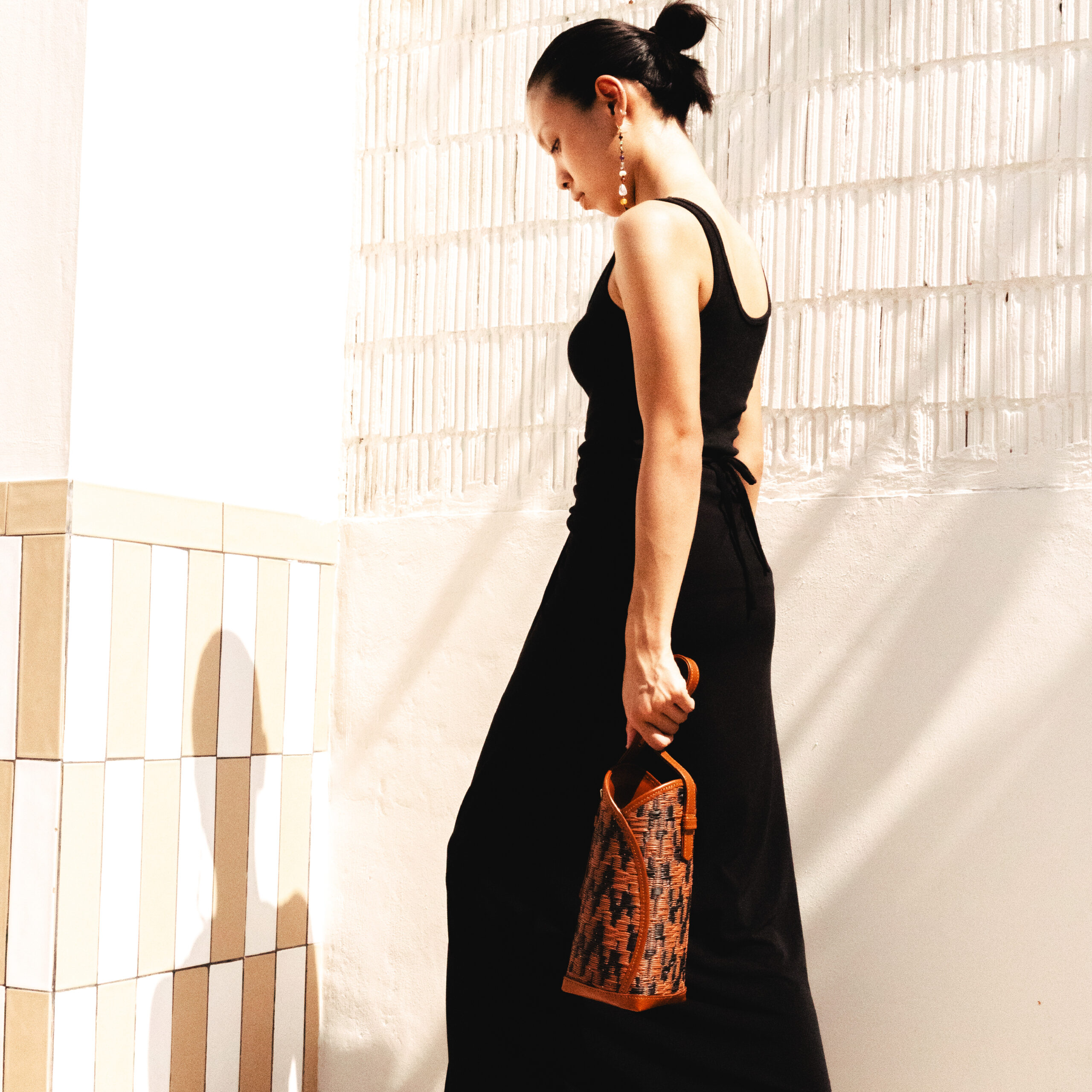 With its rounded silhouette and structured square leather base, the Behati Bag exudes effortless charm and contemporary style. Designed with versatility in mind, it functions beautifully as both a compact tote and a bottle carrier. The adjustable leather strap offers added convenience, making it an ideal companion for a casual outing, a leisurely stroll, or an evening dinner.